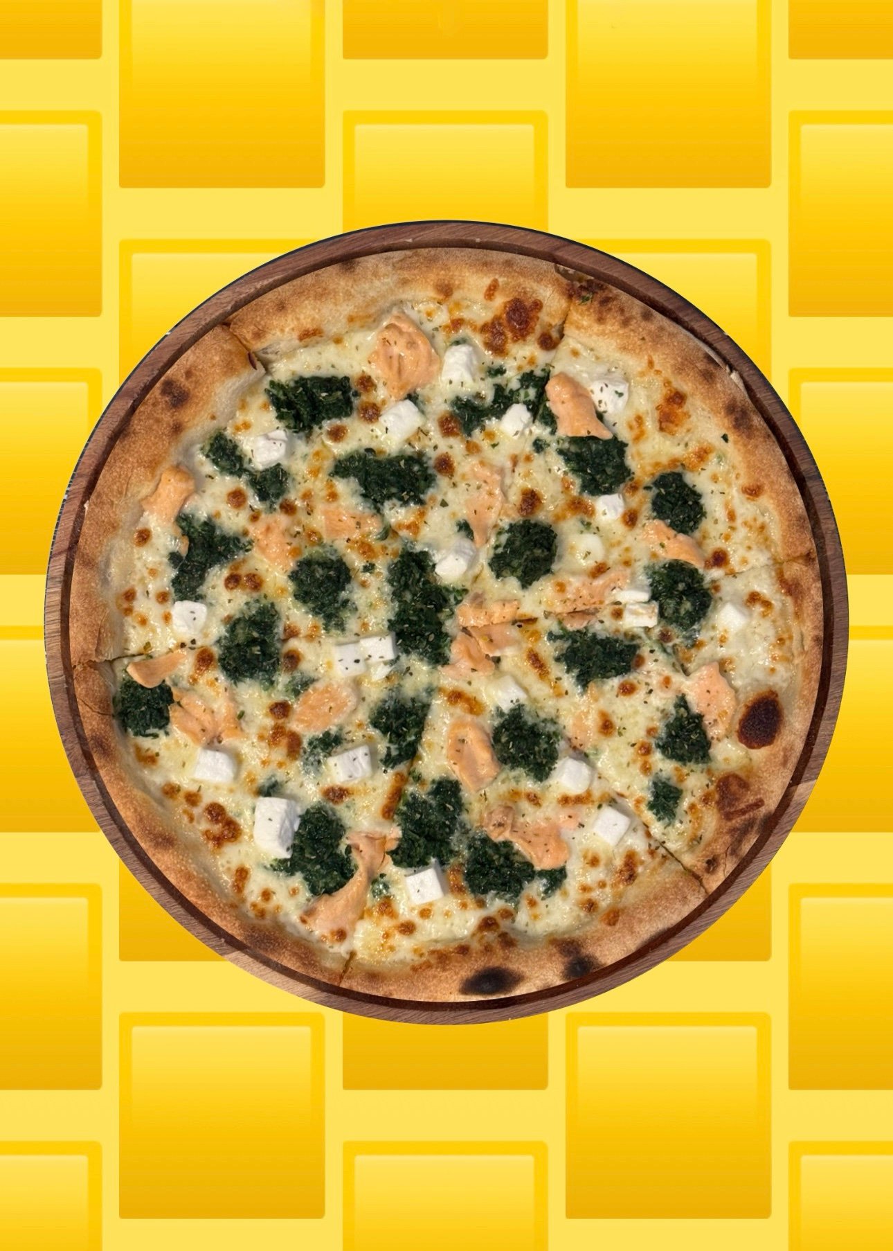sos smietankowy, ser, szpinak, losos(4), feta, oregano